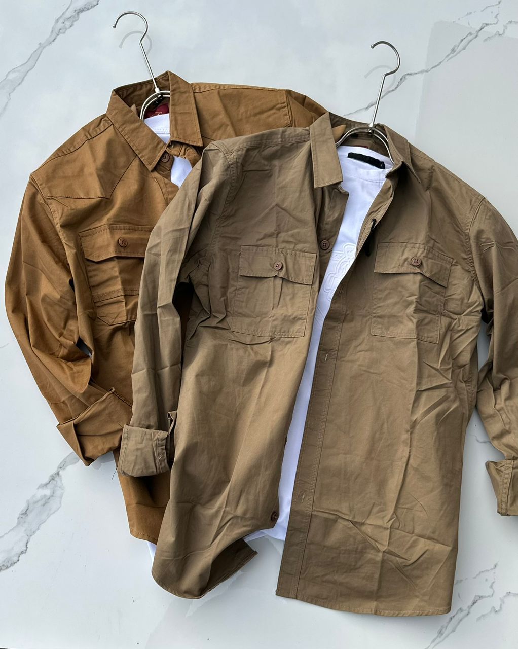 Stay sharp and versatile with the EarthCore Utility Shirts, available in four natural shades: coffee brown, sand beige, chestnut, and stone tan. Each piece features dual chest pockets and a clean structured fit