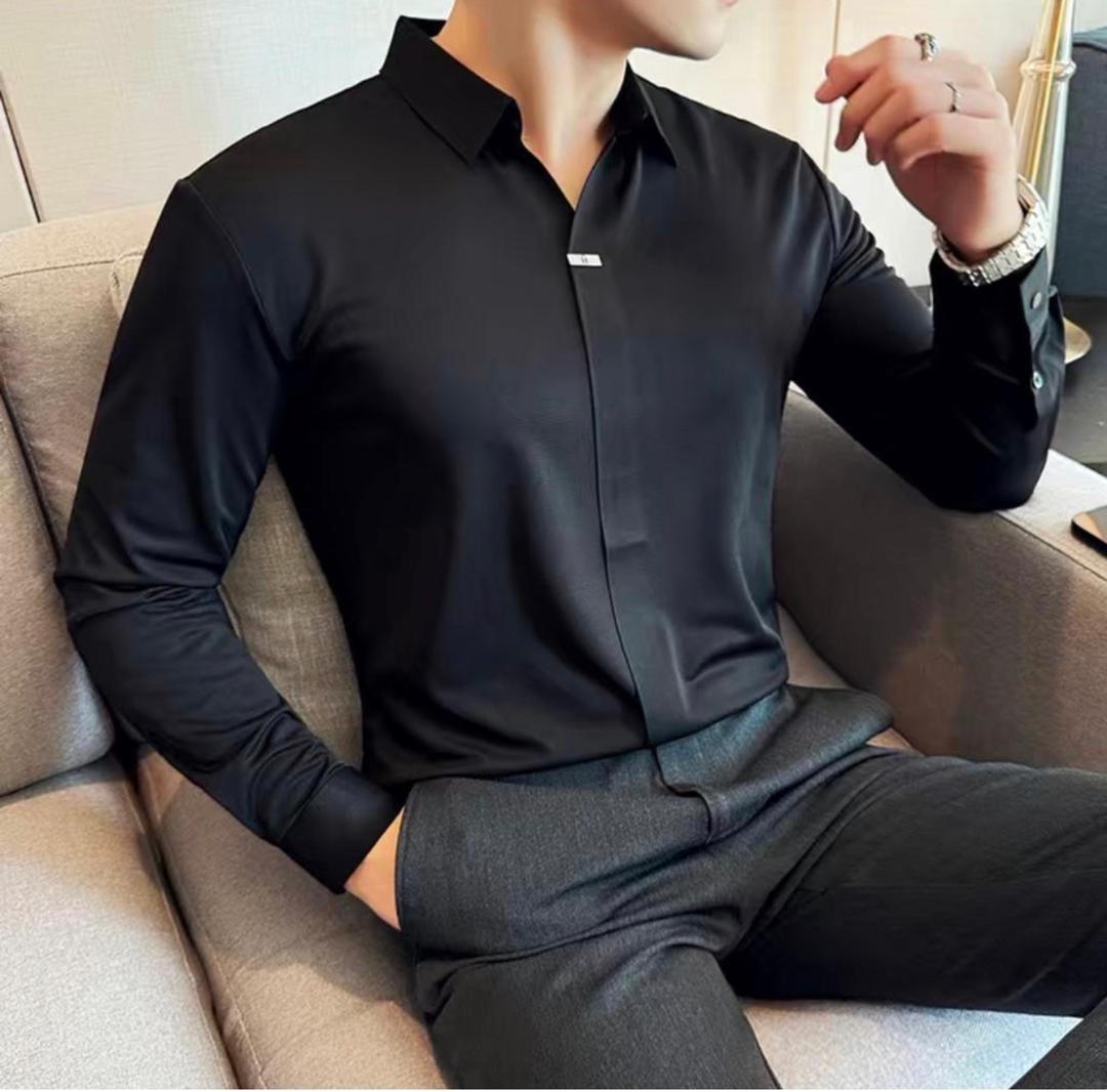 + Free ShippingStep into pure sophistication with this jet-black, satin-finish dress shirt — the ultimate choice for modern gentlemen. Its smooth texture and slim fit offer a clean, confident look whether you’re heading to a business meeting or a night out. Style meets elegance in every stitch.