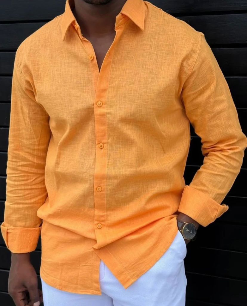 + Free ShippingStep out in confidence with this bold, breathable orange linen shirt — perfect for sunny days, casual events, or a classy streetwear vibe.